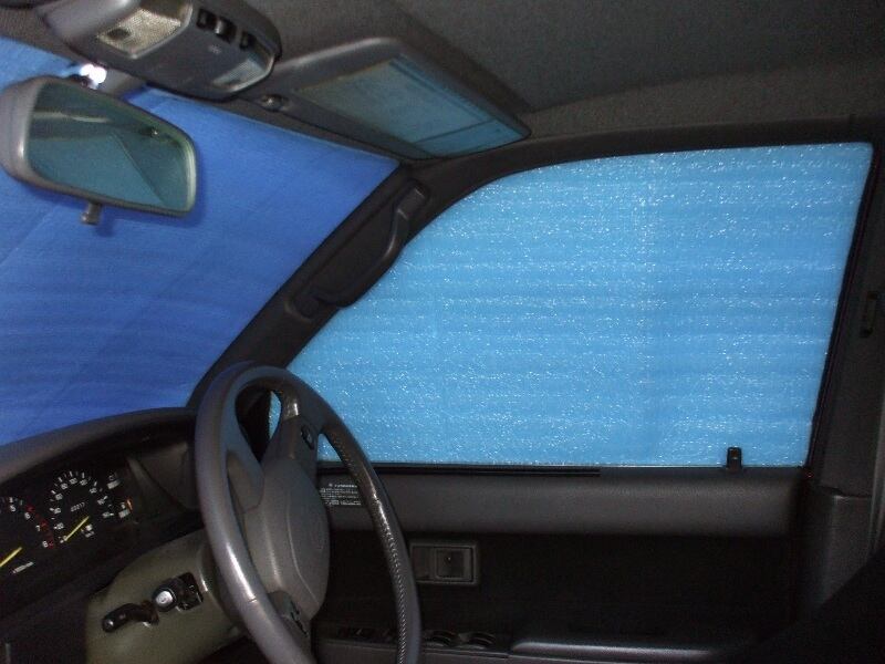この折りたたみ式断熱日よけは、フロントウインドー、ファーストウインドー、セカンドウインドー用、サードウインドー用、リアーウインドー用がワンセットとなっております。(車種により異なりますが、おおよそのフルセットの総重量は約700g前後です)