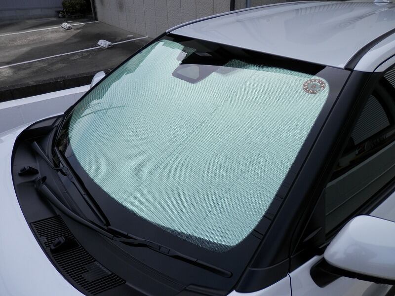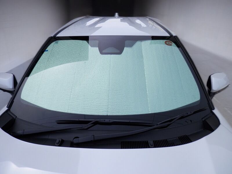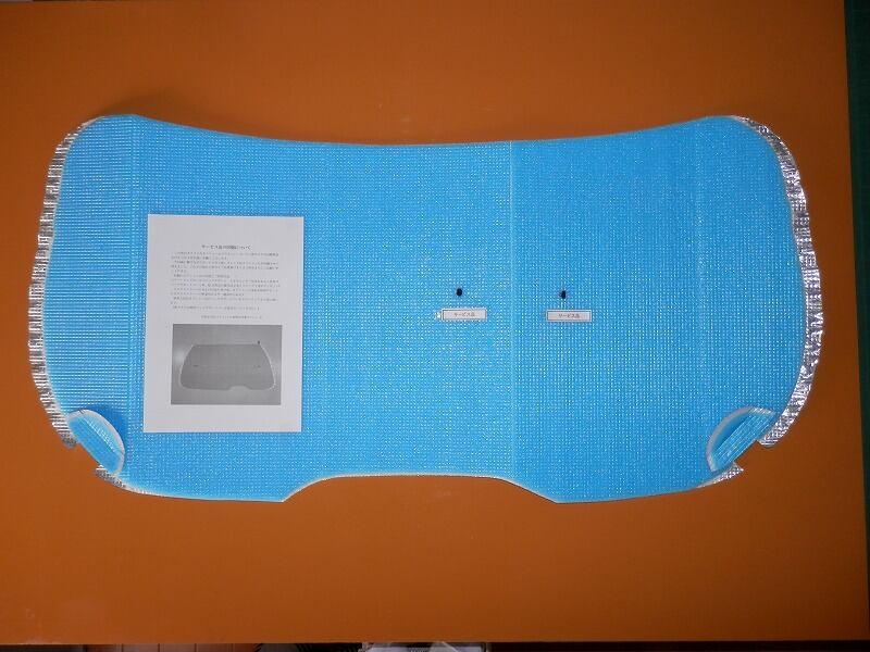 この折りたたみ式断熱日よけは、フロントウインドー用(補助日よけ1、 1面含む)2面、ファーストウインドー用(運転席側窓用1面と助手席側窓用1面)2面、セカンドウインドー用(運転席側後部窓用1面と助手席側後部窓用1面、サービスウインドー各々1面の計2面、補助日よけ2 2面)6面、サードウインドー左右2面、リアウインドー用1面、サンルーフ用を除く全11面がワンセットとなっております。