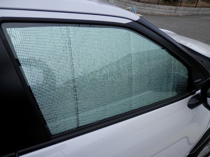 厚さ約8mmポリエチレン製表面アルミ蒸着仕上げ、太陽光を反射し材質による高い断熱効果を有するため、冬季のスキー、スノーボード又、キャンプ等真夏の炎天下の駐車時の温度抑制効果を発揮します。さらに本革シートをはじめとする内装品等の紫外線からの保護、仮眠や着替え時のプライバシー対策、室内物色防止等防犯面他でのご利用が期待できます。